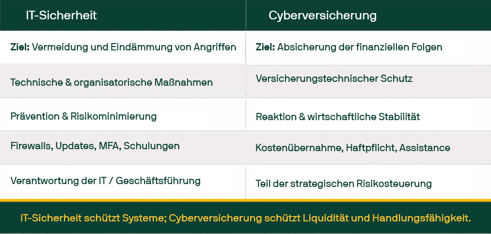 Cyberversicherung vs. IT-Sicherheit: klare Abgrenzung